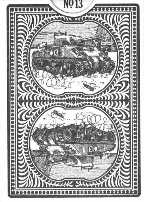 This series was created with inspiration from USPCC’s War Time series that was originally printed in the early 20th century around WWI. Each deck, Old Ironsides, Noble Train, Peter Dash Flash, and now the Invincible – Sherman Tank, all representing different arms of U.S. military might – Air, Land, and Sea.