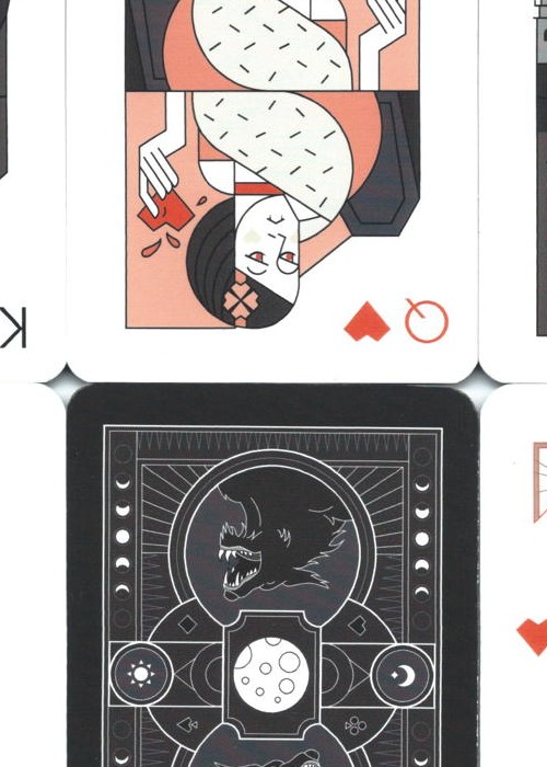The second edition of this self-published deck features redesigned backs, jokers, aces, and suit symbols. This version includes a tuck box and is available directly from the artist through his Etsy shop. https://www.etsy.com/shop/MatthewDelaneyDesign