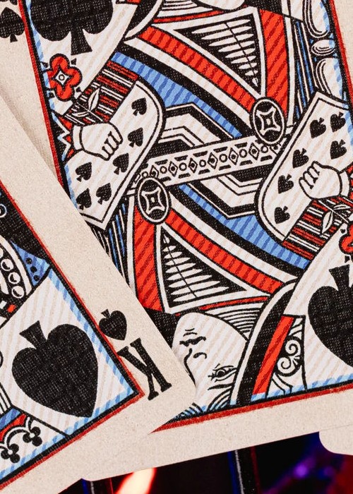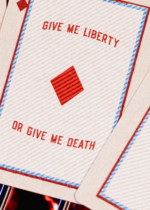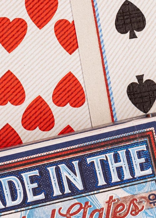 Life, Liberty, and the Pursuit of amazing decks. – Thomas Jefferson (kind of) Artist’s Inspiration: Celebrating the 4th of July was one of my fondest memories. When I was growing up in west Texas, the 4th was a magical day. I distinctively remember my mother would kiss me good-by as I rolled out the front door. I would get on my BMX bike and hit the streets of Canyon, Texas. I would spend the next hour or so riding around the entire city as I would stop at all of my buddy’s houses as our small group became a rowdy bike-riding gang, set on enjoying the day and getting a sunburn. After gathering our the boyz we made our way to the local park, to not miss any of the festivities. We knew we were close when we caught the smell of burning charcoal and the laughter of other kids as they threw water balloons to cut the edge of the hot summer sun. After spending the entire day drinking Capri Suns and filling our guts with backyard cheeseburgers we set back on the freshly cut grass to watch the fireworks. For those few moments, as the explosion of color took place in the sky, all other thoughts faded away, as the love of my country, friends, and family overtook me. The Made in The USA decks is inspired by those feelings. It is inspired by the smell of the cool summer air the fond memories of frustration as my mother made me put more sunscreen on. I’m so thankful for the freedoms and liberties we have in the United States and hope that even a stack of paper in the form of playing cards can sustain those memories for just a little longer. -Jackson Each deck is sealed and numbered up to 1,776. Printed by Mr. Playing Cards on 310 gsm casino stock with an embossed finish.