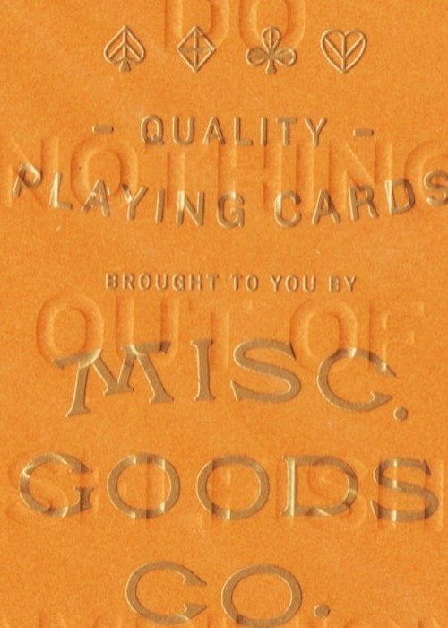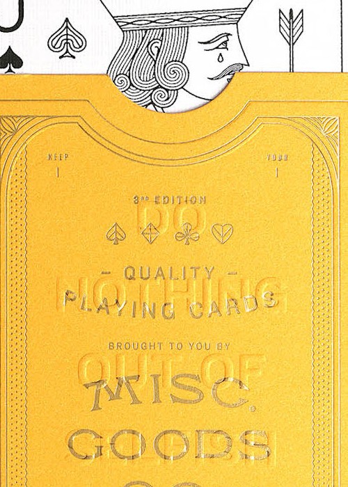 Misc. Goods Co. owner Tyler Deeb released his first deck of newly illustrated playing cards on Kickstarter in 2012 after three months of feverish design and attention. Each drawing on every playing card is re-imagined. The illustrations of the characters, symbols and each letter and number new.
