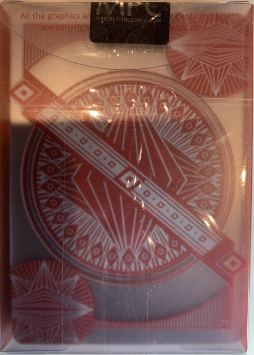 These transparent playing cards have been developed, designed and manufactured by MPC (MakePlayingCards.com). The artwork used on the card fronts uses the standard MPC branded card front and the back of the card uses a beautiful, more complex vector artwork pattern to cleverly cover the same areas as the card indices and pips on the front so other players will not be able to see through and distinguish what cards you are holding easily. This deck handles beautifully, made possible through the use of MPC’s specially developed card finishing.