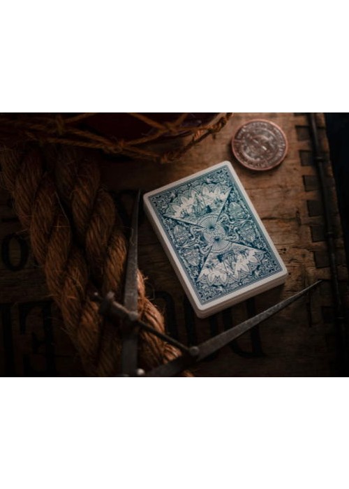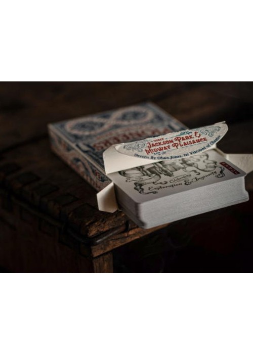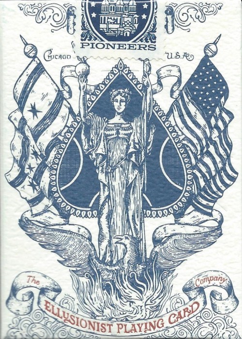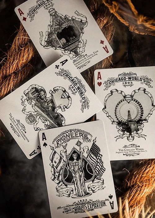 Pioneers are fully custom, inside and out. From the distinctive deck seal to the impeccable pips. Every detail and line on the tuck, backs, aces, and jokers was painstakingly hand-drawn by renowned playing card artist Oban Jones. The back design is a celebration of the 1893 World’s Fair, a 600-acre spectacle that commemorated the 400th anniversary of Columbus’ arrival to the new world.