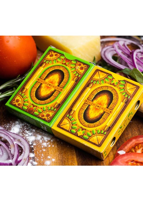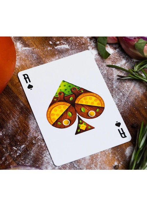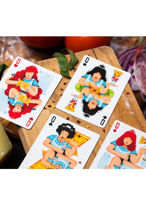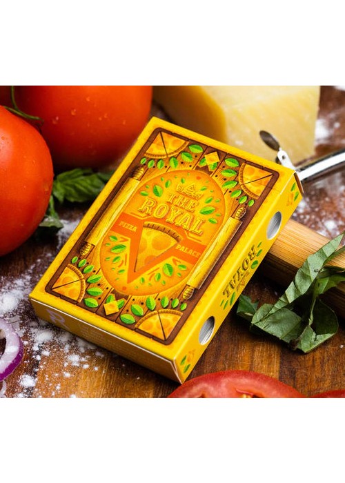 All pizza lovers, unite! We have a new deck for you! Enter the world of an authentic Italian pizza kitchen. A fragrant place where the dough is worshipped, tomatoes are celebrated, cheese is revered, and basilic is sprinkled liberally. This colourful deck is perfect for anyone who loves pizza (and who doesn’t?) or simply wants to own a simple, yet colourful deck that brings a smile on their face. Whichever group you belong to, without further ado, let’s bite into the Royal Pizza Palace!
