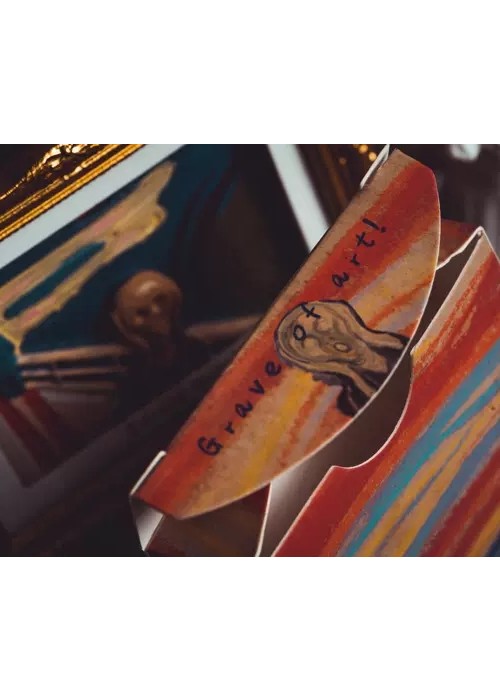 This is a spoof deck by King Star’s design team leader LemonKT. It says limited edition of 50001 on the tuck, but in reality less than 1000 were printed. The joke deck Grave of Art·Scream is a work created by the chief designer of KING STAR, LemonKT, while skiving at work and having nothing to do in his spare time. As you can see, Scream is not a product of serious tribute to art or classic re-enactment, but a spoof! The cheeky designer who is full and has nothing to do has added a lot of graffiti and oil painting elements to the design of the card surface. Finally, what is presented in front of your eyes is this art hodgepodge and destined for the art tombs.