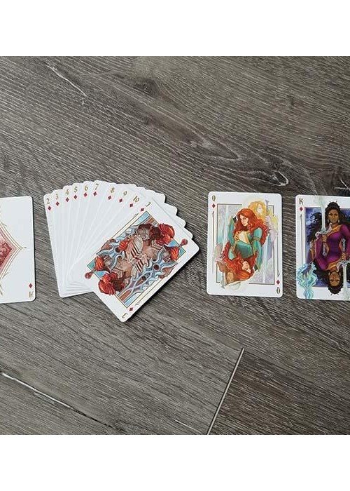 Beautiful deck with gorgeous illustrations of characters from Brandon Sanderson’s Stormlight Archive. Includes gold metallic ink.