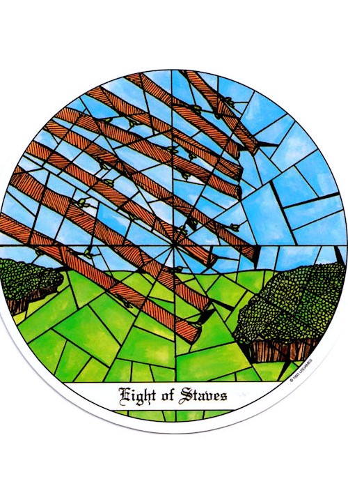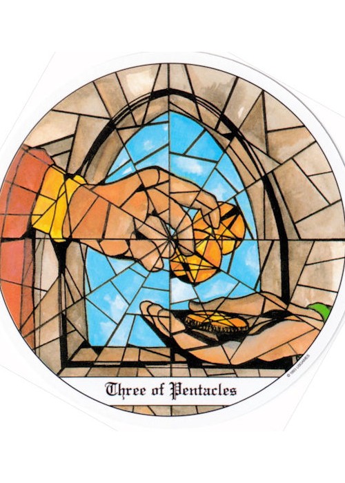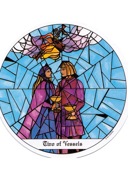 The Tarot of the Cloisters is unique, in that it is made to look like stained glass from medieval cathedrals. The cards are round with easily understood, beautifully coloured artwork.