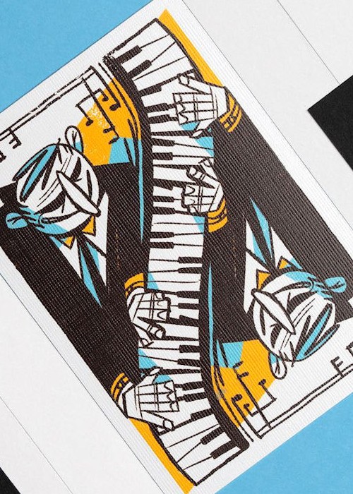 Designed by Michael Mateyko, each card features an Art Deco style illustration that celebrates the spirit of improvisation and musical expression.