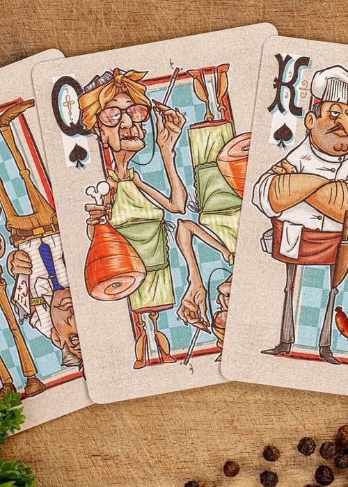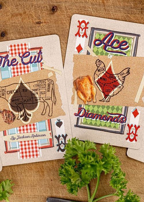 The Cut is the product of Jackson’s storytelling and desire to create new worlds. Jackson has created the world of a butcher shop including characters that range from the cooks, workers, customers, and the health inspector. The full-body court cards add a new dimension and character to each person. With unique, custom-designed pips and court cards, this deck is unlike any other deck you have seen from Kings Wild Project.