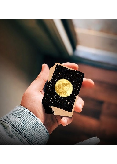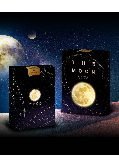 Limited edition of 399, numbered seal. The Moon Playing Cards is inspired by the moon, which is the closest planet to the Earth. The Regular Edition is limited to 5000 decks. And the main feature of the design is that its face cards have no suits and numbers, the artwork has been designed in a way to improve the effect of cardistry in action. Let me say this again, there are no Courts, no Numbers, only Jokers.