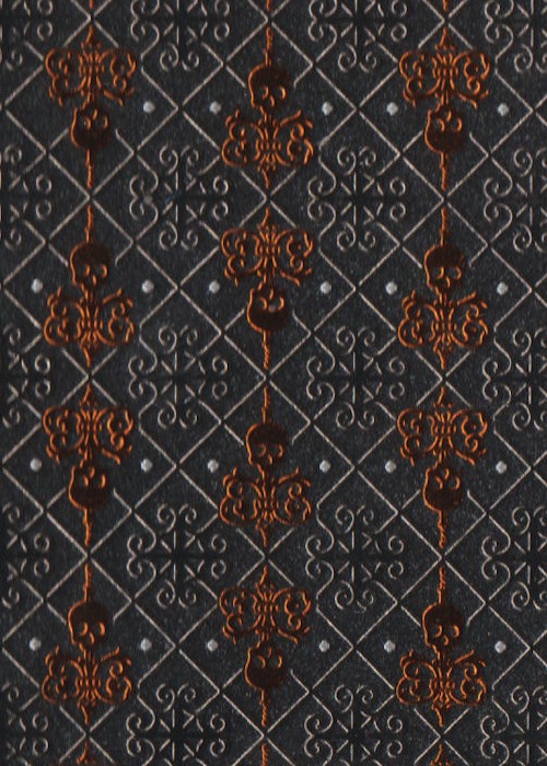 The back design is complements the faces with a repeating skull pattern.