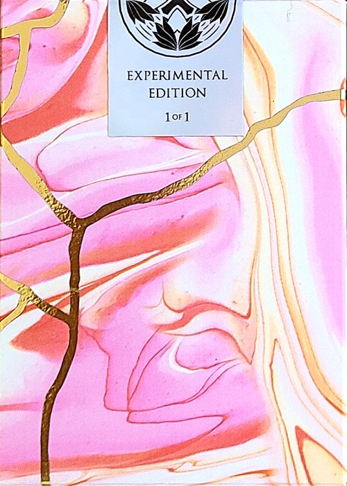 This deck is printed with a unique soft non-gloss finish showcasing the design below along with a shimmering gold foil that showcases the cracks and repairs of the deck. The cards inside feature an animated blooming back design that when flipped will show the logo flowering and closing with the different seasons. The deck gilding is made to match the tuck. The two piece Jokers showcase a piece of the card falling off with the repair paint revealing a ‘J’ to complete the Joker titling. The AoS follows similar in suit with a “broken” face revealing the spade shape with a custom pattern to match the back design and the ‘Experimental Series’ tag below.