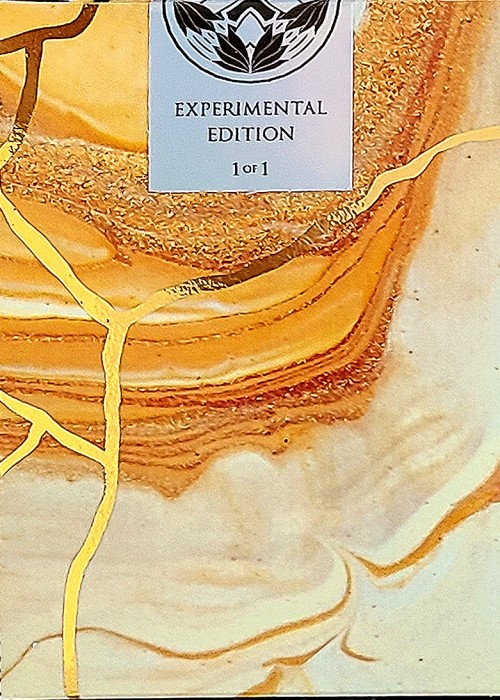 This deck is printed with a unique soft non-gloss finish showcasing the design below along with a shimmering gold foil that showcases the cracks and repairs of the deck. The cards inside feature an animated blooming back design that when flipped will show the logo flowering and closing with the different seasons. The deck gilding is made to match the tuck. The two piece Jokers showcase a piece of the card falling off with the repair paint revealing a ‘J’ to complete the Joker titling. The AoS follows similar in suit with a “broken” face revealing the spade shape with a custom pattern to match the back design and the ‘Experimental Series’ tag below.