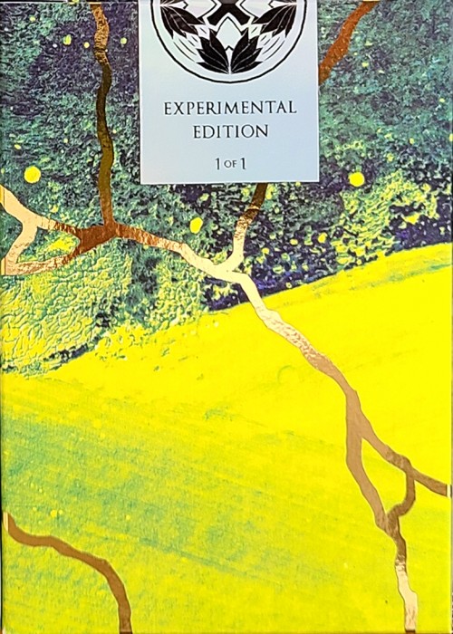 This deck is printed with a unique soft non-gloss finish showcasing the design below along with a shimmering gold foil that showcases the cracks and repairs of the deck. The cards inside feature an animated blooming back design that when flipped will show the logo flowering and closing with the different seasons. The deck gilding is made to match the tuck. The two piece Jokers showcase a piece of the card falling off with the repair paint revealing a ‘J’ to complete the Joker titling. The AoS follows similar in suit with a “broken” face revealing the spade shape with a custom pattern to match the back design and the ‘Experimental Series’ tag below.