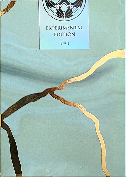 This deck is printed with a unique dimpled high-gloss finish showcasing the design below along with a shimmering gold foil that showcases the cracks and repairs of the deck. The cards inside feature an animated blooming back design that when flipped will show the logo flowering and closing with the different seasons. The deck gilding is made to match the tuck. The two piece Jokers showcase a piece of the card falling off with the repair paint revealing a ‘J’ to complete the Joker titling. The AoS follows similar in suit with a “broken” face revealing the spade shape with a custom pattern to match the back design and the ‘Experimental Series’ tag below.