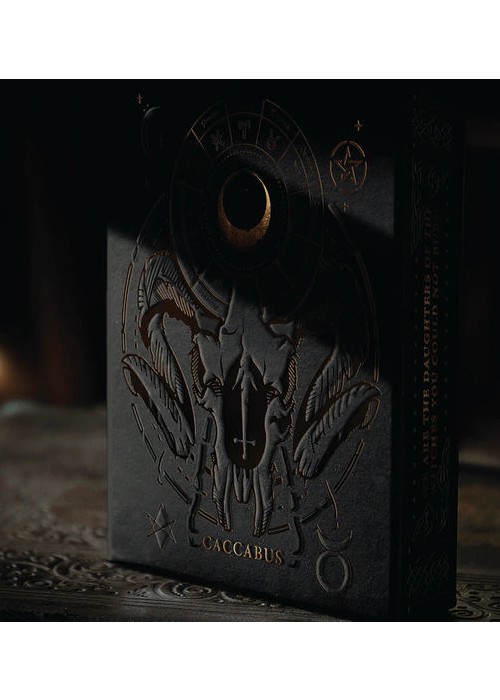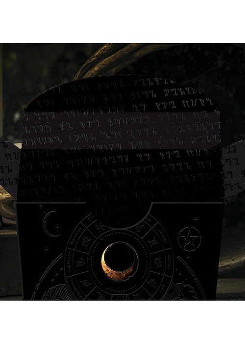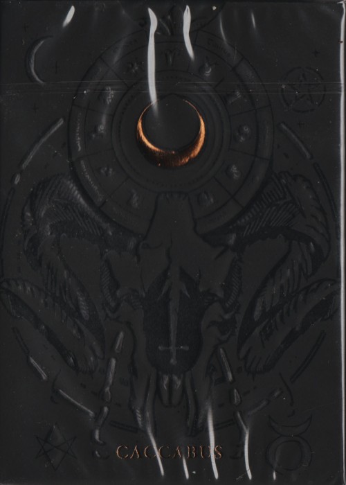 The Caccabus tuck box is manufactured with a black, soft-touch stock which is embossed on all sides. Copper foil and black/UV varnish is used in combination to honor the spirits of black magic and archaic energy. UNLOCKED BONUS: UV glow in black light.