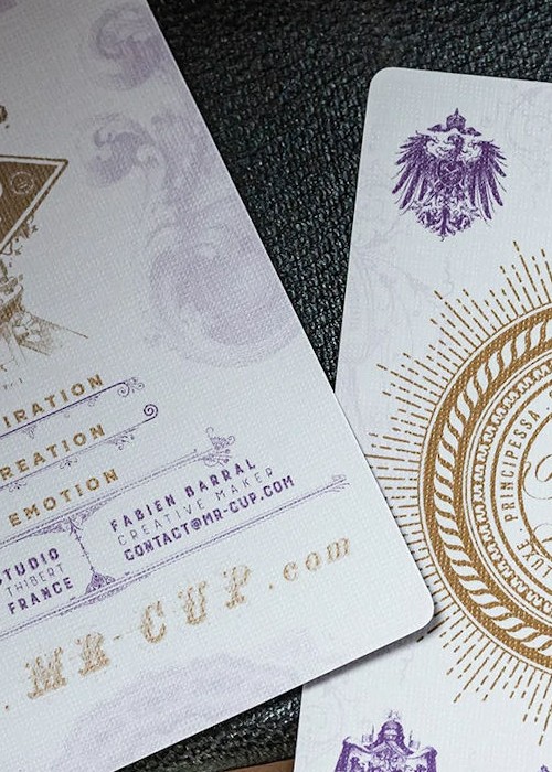 The cards are printed by NPCC Noir Arts and the deluxe tuck cases in letterpress in France by Studio Pression.