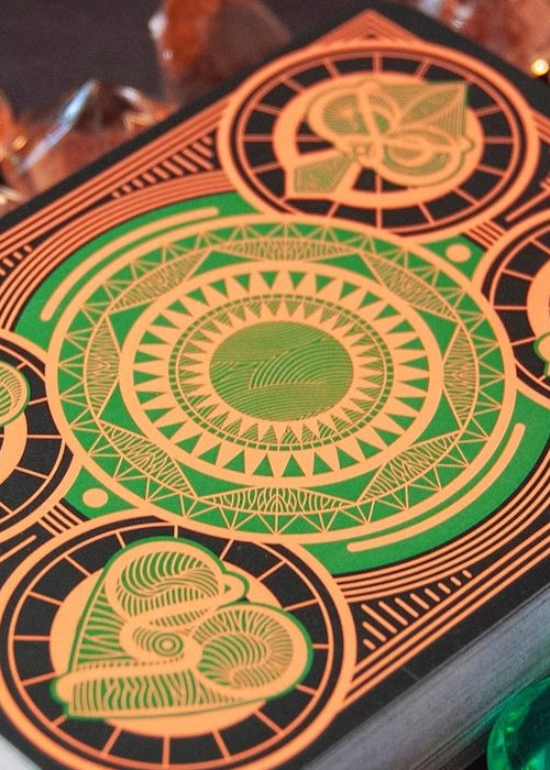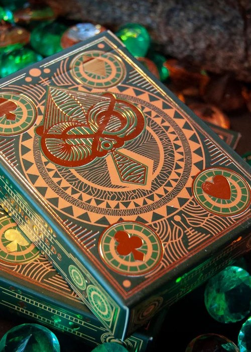 A deck of 54 cards with unique illustrations on the fronts and backs in the Emerald theme. Packed in a tuck box sealed with a unique number (1-500). These cards came to life thanks to our Kickstarter backers and now they are available to you!