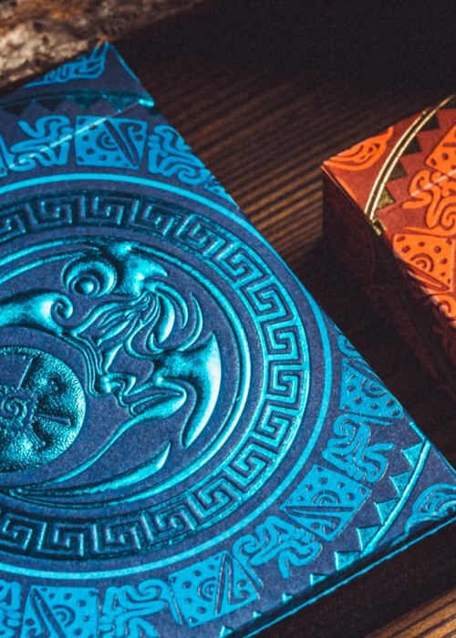 Inspired by Maya mythology, the deck comes in two variations differentiated by color scheme, named The Sun Deck and The Moon Deck:
