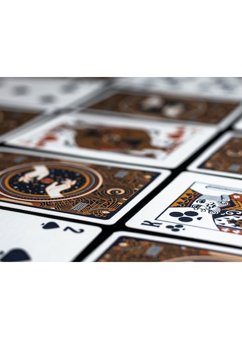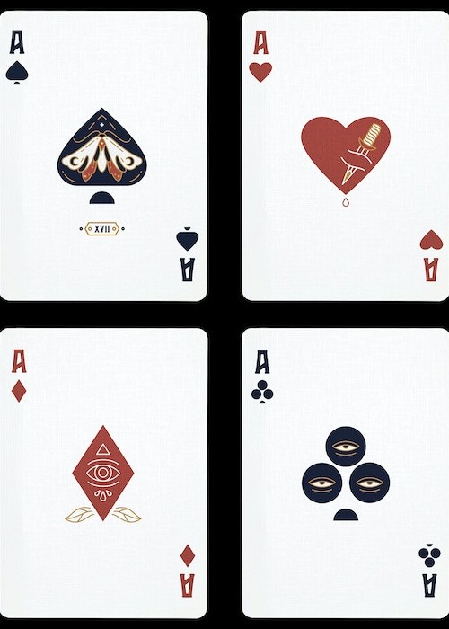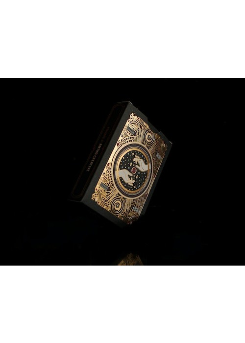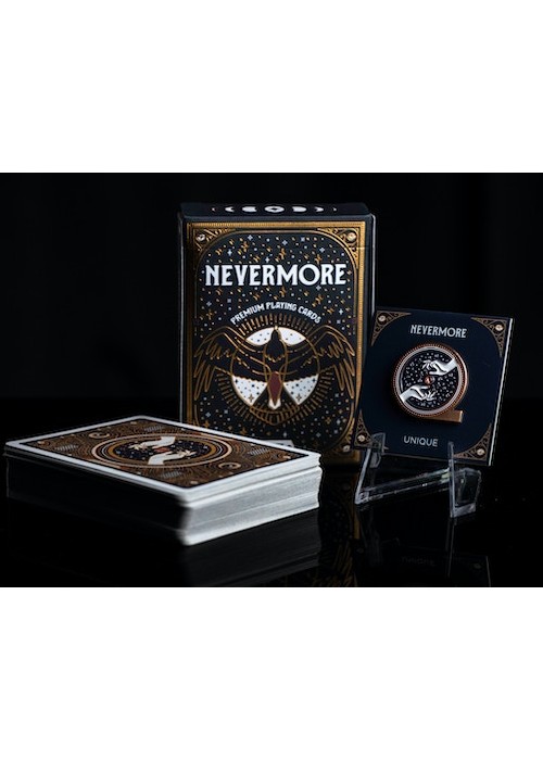 Funded as a Kickstarter project on September 11, 2022, with €13 857 (Goal: €5 000) pledged from 236 backers. This is the first deck created by Unique Playing Cards. If you pledged for the Unique Collector’s Pack you would receive the Nevermore emblem and the Original emblem, if you collect six emblems you will get access to the Vault of miraculous tools and crafts and free rewards. What these rewards are is unknown at the time when this Kickstarter was released. The gilded edition had a limited run of 150 decks. It is unknown if all were printed or that only the pledged amount was printed Kickstarter link: https://www.kickstarter.com/projects/uniqueplayingcards/nevermore-playing-cards-by-unique/description
