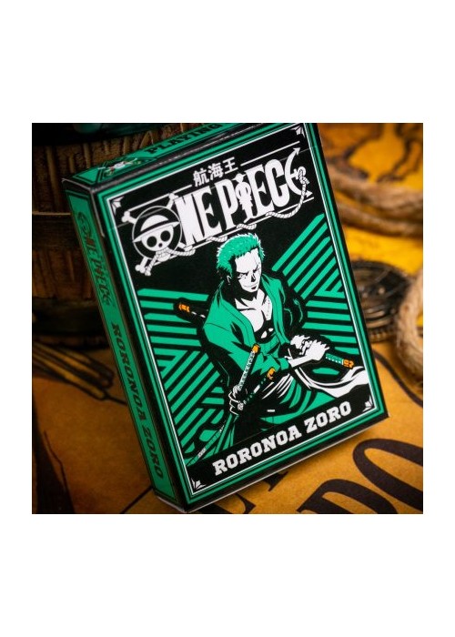 RORONOA ZORO I’m going to be the world’s greatest swordsman! All I have left is my destiny! My name may be infamous…but it’s gonna shake the world!!! Roronoa Zoro, a.k.a Pirate Hunter Zoro, is the combatant of the infamous Straw Hat Pirates. His lifelong dream to become the world’s greatest swordsman led him into a world full of adventures! Main features: Officially licensed by Toei Animation Made for professionals with the highest casino quality with a luxury finish. Features a finely embossed tuck case with custom One Piece artwork. Fully custom suits (Clubs, Hearts, Spades, Diamonds) with One Piece elements Fully custom back design. The Ace of Spades is based on the Pirate’s logos. Custom face cards (Jack, Queen, King) with all the Straw Hat Pirates and emphasis on the main character. Perfect for all the One Piece fans who wish to own a collector’s item.