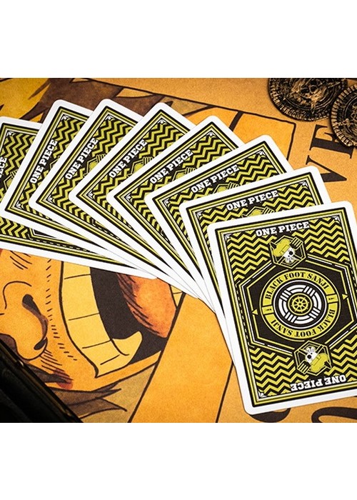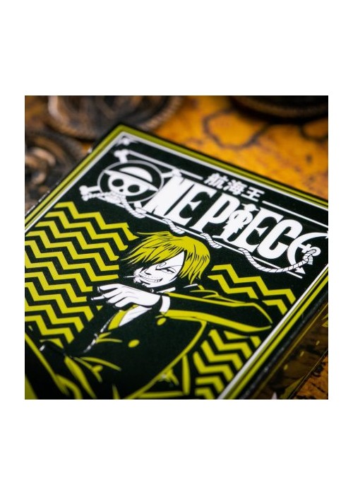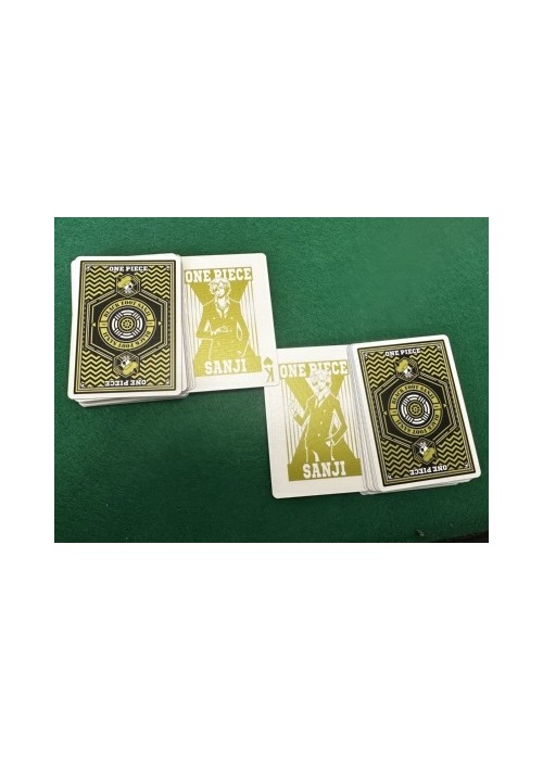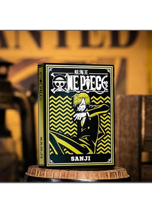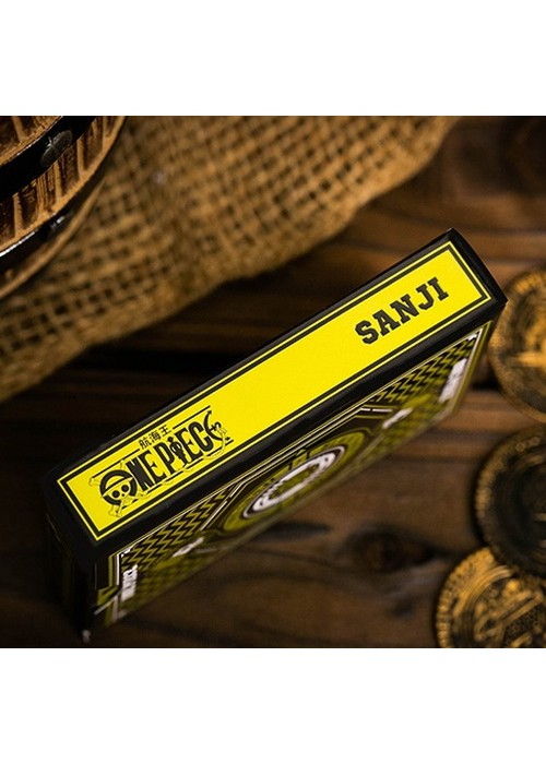 SANJI Messing with a cook of the sea is a good way to get yourself killed… Remember that well. Sanji, a.k.a Black Leg Sanji, is the cook of the infamous Straw Hat Pirates. His lifelong dream to find the rumored chef’s paradise, All Blue, has led him into a world full of adventures! Main features: Officially licensed by Toei Animation Made for professionals with the highest Casino quality with a luxury finish. Features a finely embossed tuck case with custom One Piece artwork. Fully custom suits (Clubs, Hearts, Spades, Diamonds) with One Piece Elements Fully custom back design. The Ace of Spades is based on the Pirate’s logos. Custom face cards (Jack, Queen, King) with all the Straw Hat Pirates and emphasis on the main character. Perfect for all the One Piece fans who wish to own a collector’s item.