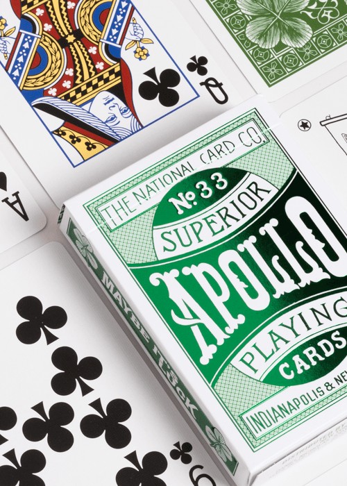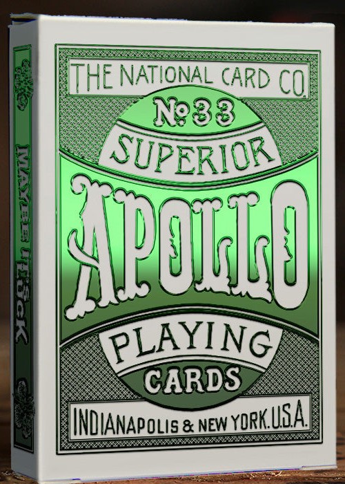 Daniel Nicholas, Jason Ladanye, and Jody Eklund have been working with the USPCC to bring the first official reproduction of the gorgeous Four-Leaf Clover Back playing cards originally printed by the National Card Company over a century ago. The Premium Edition is where we spare no expense: Custom numbered tax stamp seals (xxx/xxx), premium tuck box paper, raised embossing, Metallic foiled tuck box, and Metallic inks on the cards themselves. https://www.kickstarter.com/projects/rpcc/revival-design-company-apollo-playing-cards-clover-back/description The National Card Co. / No. 33 / Superior Apollo Playing Cards / Indianapolis & New York U.S.A.