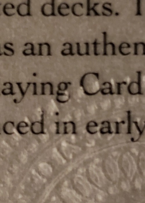 The cards are printed on a 300gsm German paper, with an air-cushion finish that handles extremely well. The cards are fully custom, with hand drawn details, rich court art and unique pips.