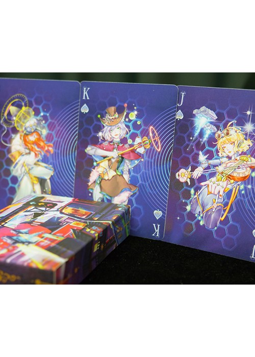 Presented by Barry Manufactured by USPCC Limited to 2,500 decks worldwide Premium stock, thin-crushed finish 100% customized, 12 different face cards, 2 different Jokers and more Custom tuck boxes printed both outside and inside The Candela is the unit of light. In this steampunk + cyberpunk parallel universe, you will discover 14 unique delicately hand-drawn characters. Each one is a test of our imagination. The whole deck took 4 years to perfect. Light has no limits. Life has no limits.
