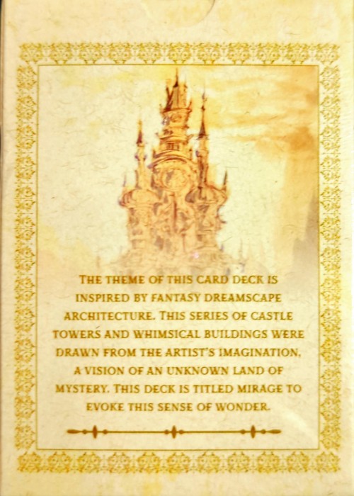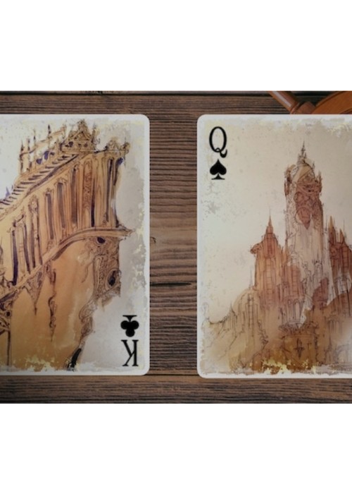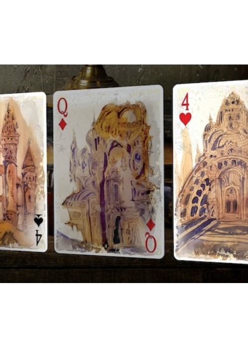 A limited edition deck of custom illustrated playing cards, featuring original watercolor artwork inspired by fantasy architecture. These surreal, ornate and whimsical buildings are created from the artist’s imagination after studying the architectural styles of diverse time periods and civilizations with the goal of conjuring castles and towers which give the viewer a sense of wonder and awe – a magical landscape, as those cities which one dreams of while reading fairytales as a child, an enchanting mirage.