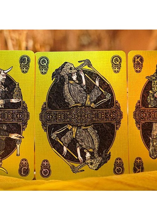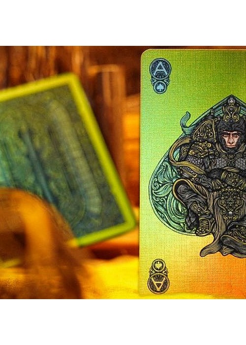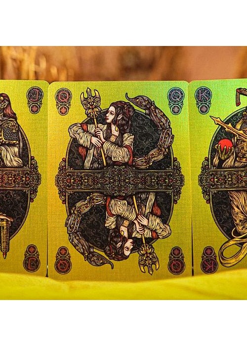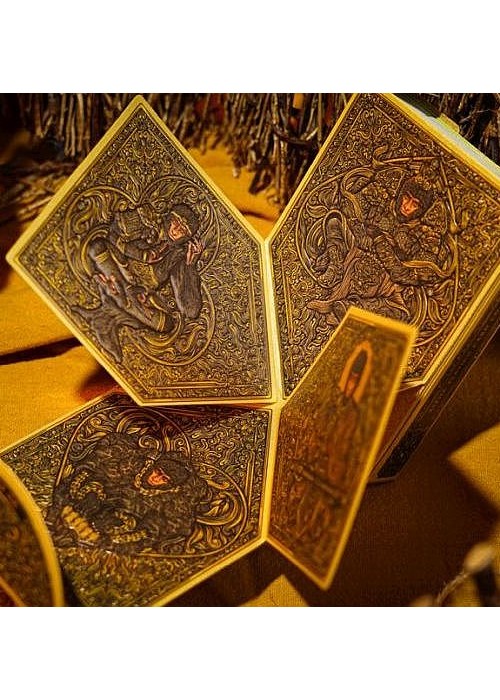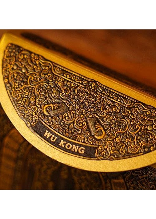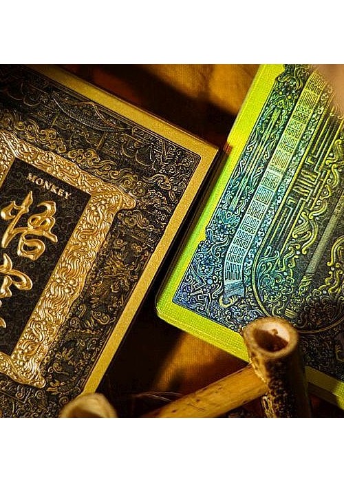 Monkey King is a central character originating from the 16th-century Chinese novel Journey to the West (西游记), and he remains one of the most beloved and influential mythological figures in China. In this novel, Sun Wukong, born from a stone, attains supernatural powers through Taoist practices. However, after a rebellion against the heavenly realms, he is imprisoned beneath a mountain by the Buddha. Five hundred years later, he embarks on a transformative journey with the monk Tang Sanzang (唐三藏), riding on the White Dragon Horse alongside two other disciples, Zhu Bajie and Sha Wujing. Their mission: to retrieve Buddhist sutras from the West, the realm of Buddha and his disciples in India. where Buddha and his followers dwell. This is the main edition – MONKEY KING Playing Cards. It features Pop-Up tuck box that can flap open to form a cross-shape canvas and gold holographic full foiled cards. The Aces feature the Monkey King in four different Taoist poses. Courts represent the characters in the novel.