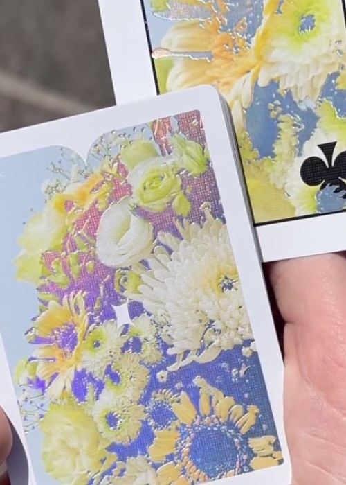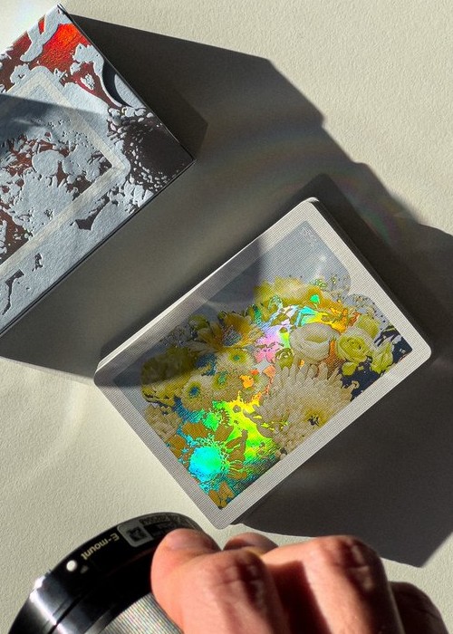 Elevating the floral deck by merging photography with holographic hot foil. A study in extravagance and water seeking.
