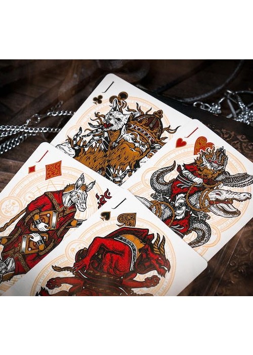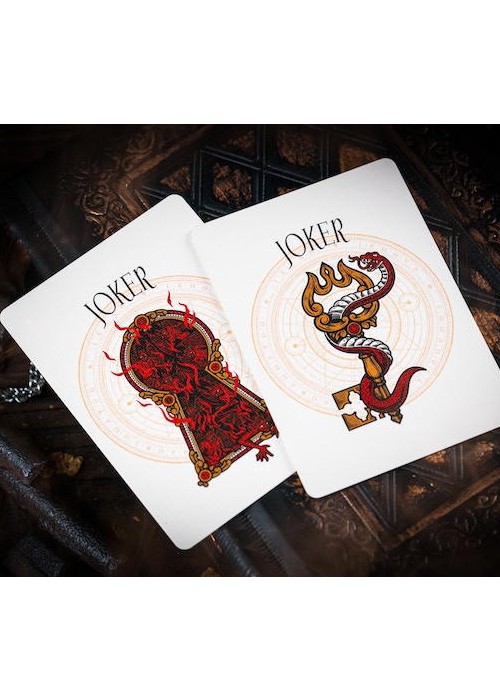 This deck is unlike any other deck you’ve seen, with its intricately designed tuck box and back design. The box itself is a work of art, made to resemble a conjuring spell-book. Embossed with hot foil designs, the box features a giant key on the front cover, warning you of the great power that lies within. The Key of Solomon is protected by a giant serpent surrounding it, as if warning you that once you open the book, you can never go back.