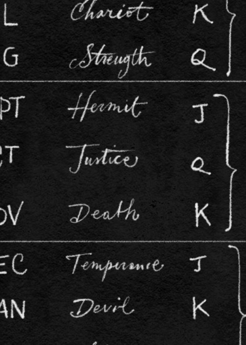 The way I am distributing characteristics of the characters is displayed in the black table. Long story short: I picked the number of court cards (12) and I am matching them with the 12 houses of the zodiac, the 12 months, and 12 major arcana associated to that month (like my Keymaster Tarot Calendar). Suits are associated to seasons, and this will affect the color palette difference between red and black cards.