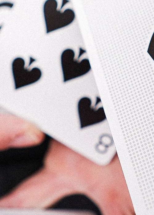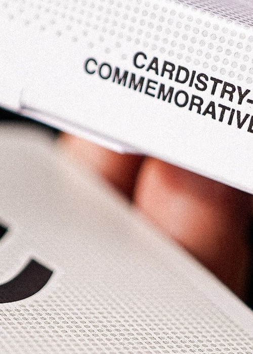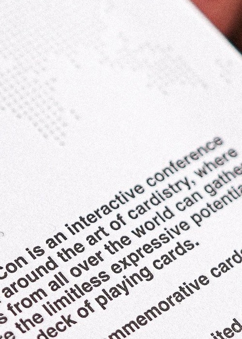 Celebrate the commemoration of 10 years of Cardistry-Con with this year’s annual Cardistry-Con deck for the con in Japan. Inspired by community classics, the design centers on the new Cardistry-Con logo, surrounded by a gray spot pattern representing the event attendees. This signifies the event bringing people together over our shared passion. The cards are housed in a beautiful letterpressed tuck case with world map details. The Cardistry-Con new logo is based on the shape of the deck of cards when it is about the get springed from one hand to the other – a curved shape.