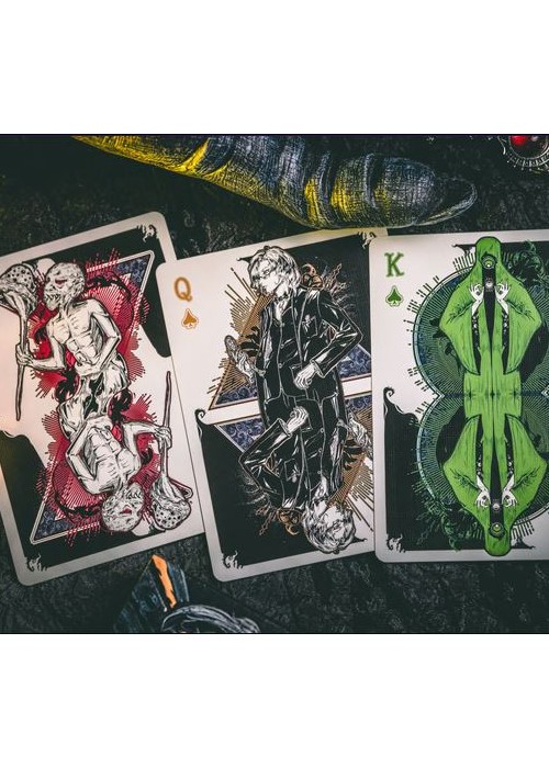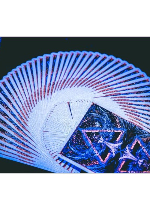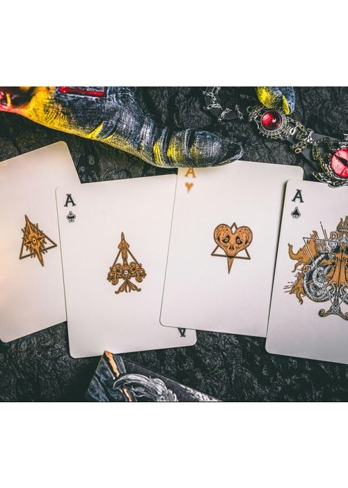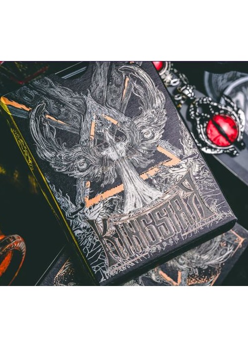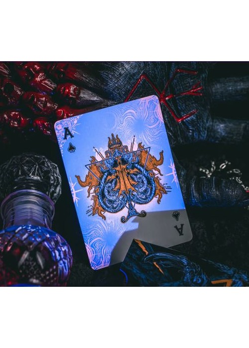 Along the shore the cloud waves break, The twin suns sink behind the lake, The shadows lengthen In Carcosa. Marked as the first deck of the grandeur that is this series, the Endless deck features special matte tactile texture with pearlescent paper, along with custom hot foils inside the box. The endless deck marks the beginning of the series, as the King in Yellow slowly steps out of the mist… Under UV Light, the cards display a hint of yellow, fully showcasing the madness encased within…