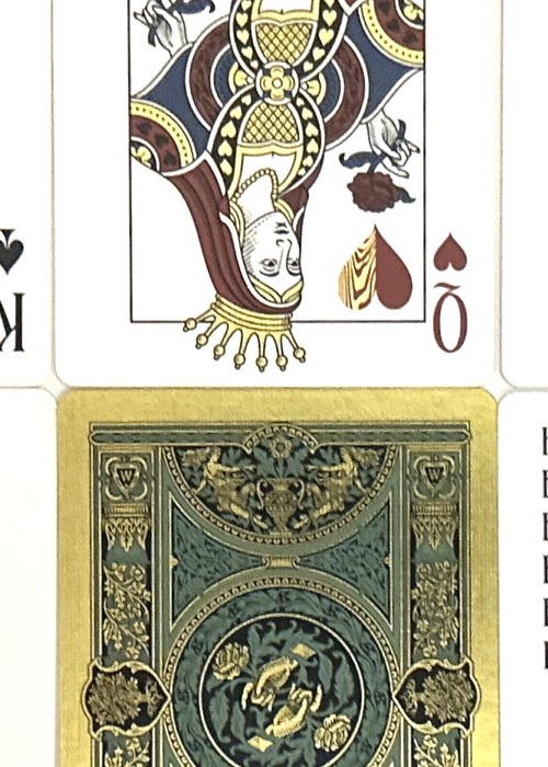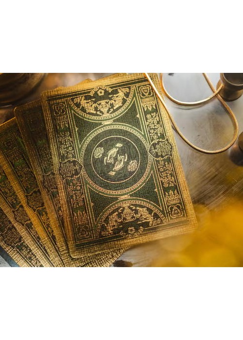 Each sleeve is hand pressed, creating a stunningly detailed, richly textured effect. Embossed and foiled in gold, the deck is a pleasure to view and handle before one even opens the box.
