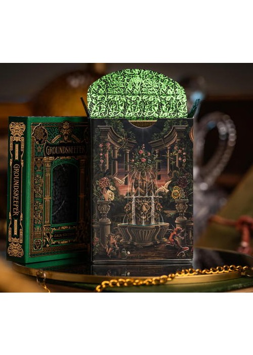 At the center of the backing design, one finds a pair of hands, intertwined. The concept of working by hand is core to Wyrmwood, of course, but it also speaks to the care, precision, and collaboration found in the Groundskeeper deck itself. Finally, we reached out to Studio Pression in France for the breathtaking tuck box in which we house the finished deck. Groundskeeper was born from working hand-in-hand with friends from around the world; a fitting origin for something so universal as a deck of cards.