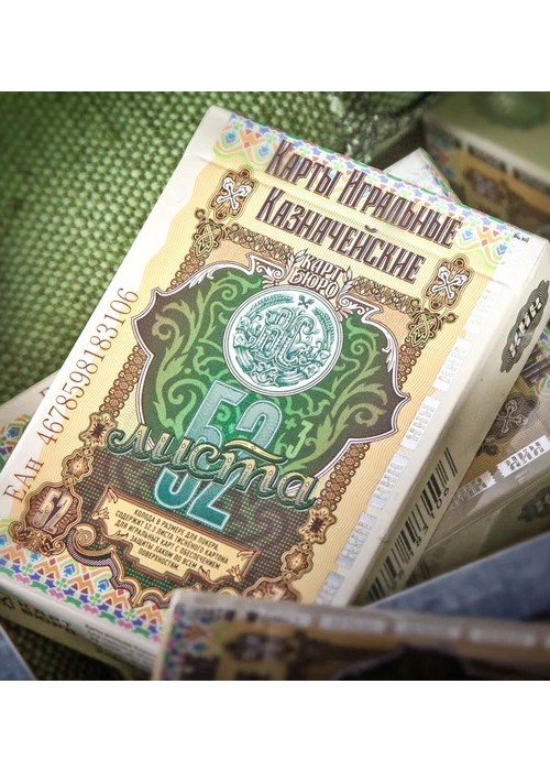 This is Treasury: Gold Standard Playing Cards, a deck of cards based on Russian’s currency rubbles, designed by Vitaly Sinkevich (@oldproof). The design of this deck incorporates classic elements of banknote design, such as guilloché patterns, engraved portraits, the Orlov seal, imitation of Metallic ribbon on the box. Kings are historical figures who have made a significant impact on the history of playing card production in Russia. Queens are characters from banknotes that were in circulation for a short time in 1918-1919, mainly in the area beyond the Ural. Jacks are characters from the 1938 banknotes, except for the Jack of Hearts. The Jack of Hearts features a postman to commemorate the role of the postal service in distributing playing cards. The aces feature graphic elements from the rubles: threes, fives, and tens produced between 1910 and 1947. All the design surrounding this deck will be using Russian Cryllic alphabets. This poker-sized deck includes 52 standard cards, two jokers, and one double-backed card. Produced in China in 2023