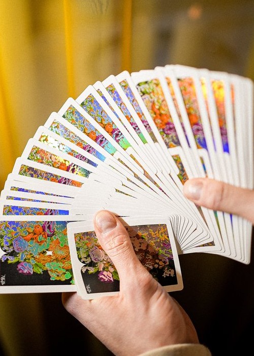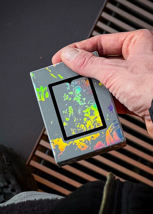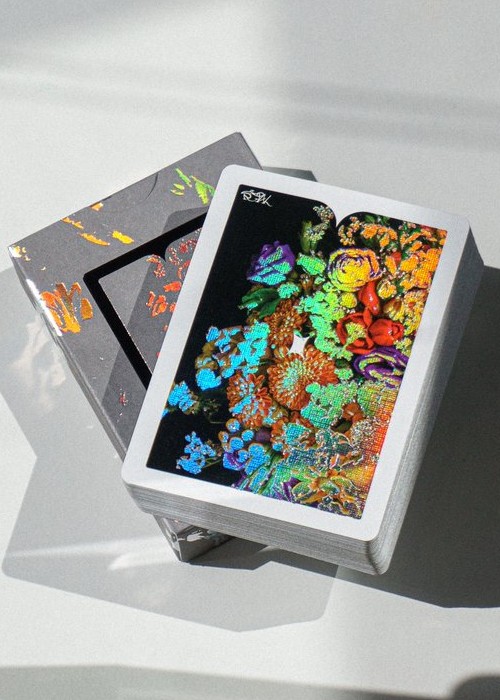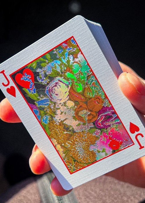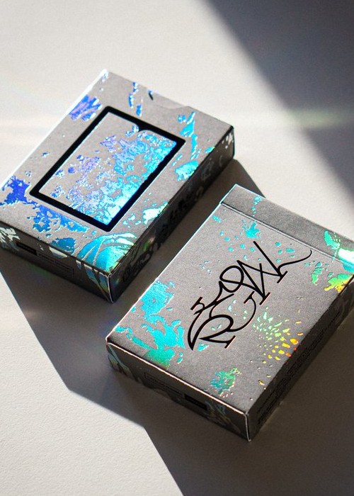 Featuring holographic hot foil on back, tuck, courts and select face cards. Housed in dark gray matte tuck case