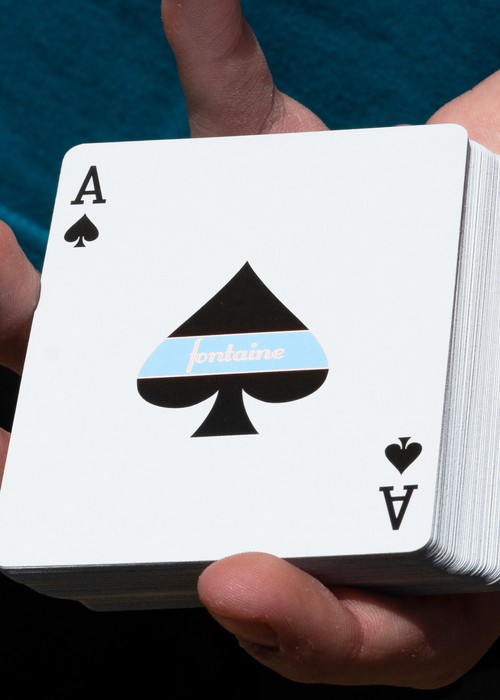 Back to the basics – this is the Classic of Fontaine decks, just a solid color background with the two letter Fs. This is the deck to start anew for Fontaine in 2024, less print runs and affordability – featuring the sky blue color.