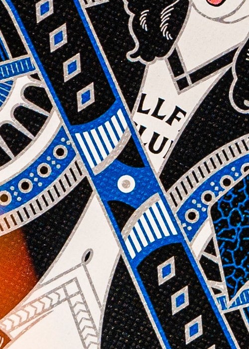 The Limited Edition deck has a change of color scheme to blue. The back design is added with blue holographic foil. The presence of Metallic silver ink is there on the artworks