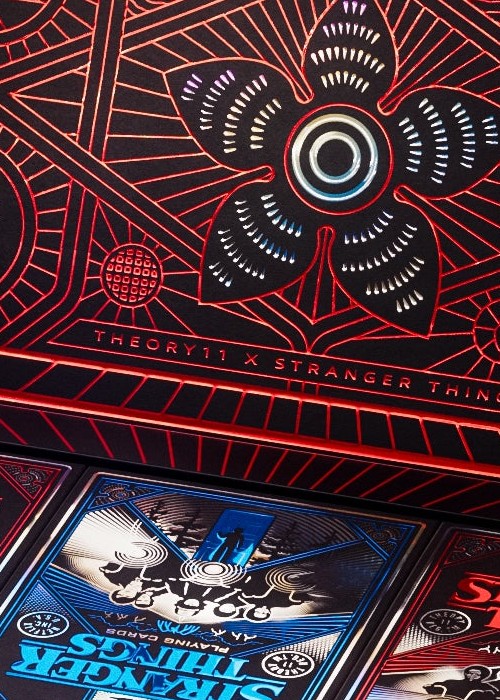 This is the limited edition of Stranger Things Playing Cards released by Theory 11, designed by Clark Orr. The deck is ONLY available within it’s Collector’s Box Set