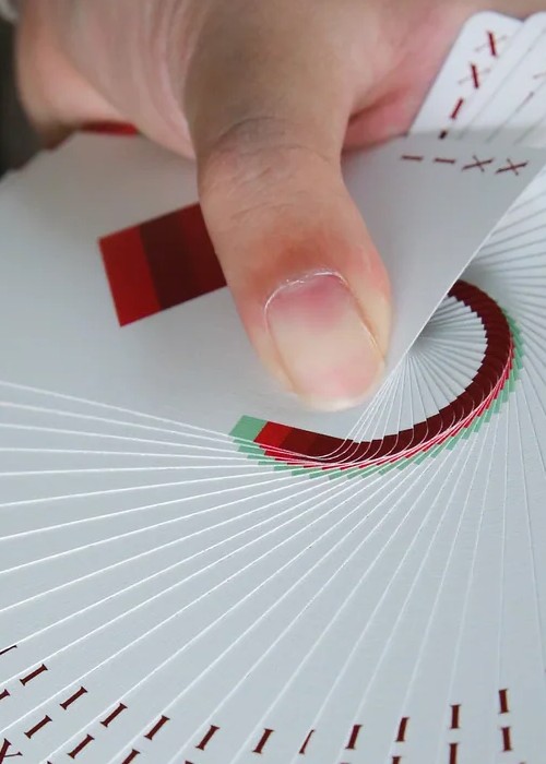Mystery Deck by LiH, each deck has it’s own pattern and colors. All the faces and backs will be all identical. Every deck will have a guide on the different variants, the metadata of the p5js generative art for the decks, and a 20 color swatches graphic card.