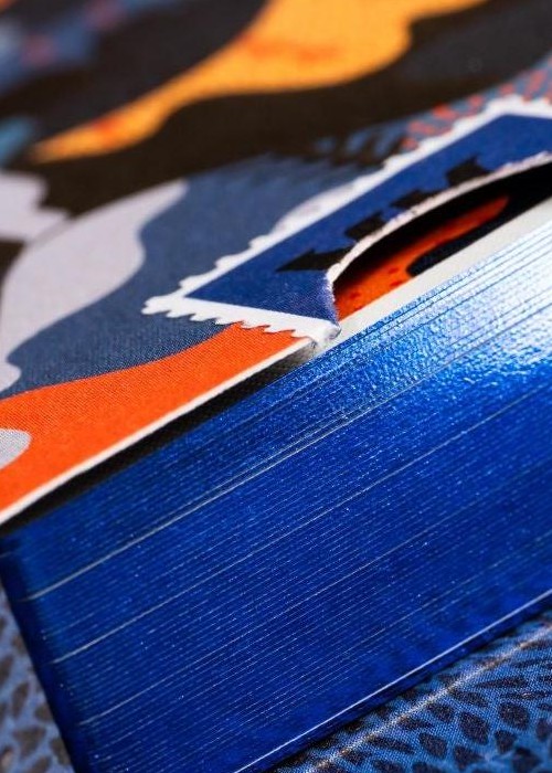 The Gilded Edition features special treatment. The tuck box has a blue colored seal. It has the same cards as the Standard, yet the cards are gilded in sapphire blue foil.