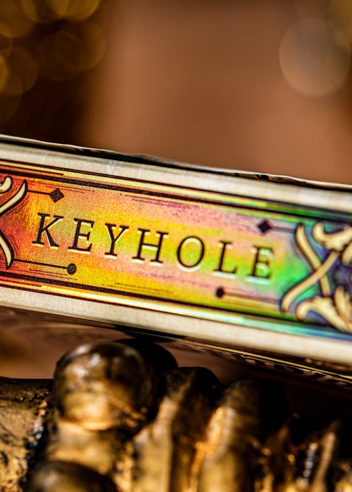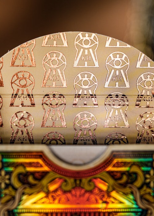 TCC Luxury presents Keyhole Playing Cards Luxury Edition. Keyhole Playing Cards is the creation of Moyogames, which TCC gained license to release them with upgraded craftmanship and premium paper. The deck switched from blue core paper to black core paper, and will have the signature M23 Finish for smoothest handling. The tuck box is applied with gold stamping along with embossing. All the original artworks stay true to the original, which are then to be elevated with holographic foil printing.