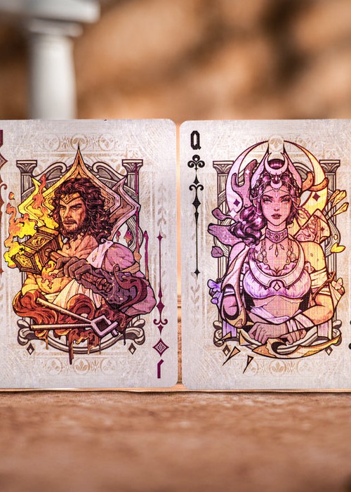 Greek Mythology features the magnificent and vast Greek mythology. Share in the divine radiance of Mount Olympus, the waves of the Aegean Sea, and the romance and grandeur of heroic epics. These cards serve as your gateway to the world of Greek mythology, allowing you to experience the legends of the gods. The iconic Nemean Lion sits at the center in a majestic stance, bearing witness to the heroic feats of Hercules. On either side, goddesses stand gracefully, their elegant forms accentuated. The holo foil shimmers with iridescent colors, capturing the lingering radiance of the mythical world. Through exquisite, high-quality illustrations and luxurious craftsmanship, we bring you the legendary stories and unique charms of the gods from the inside out – the Courts feature the important deities who are part of the Olympians group.