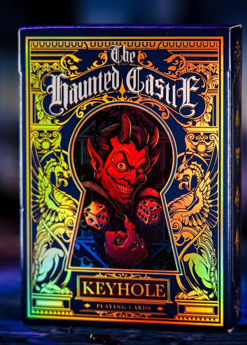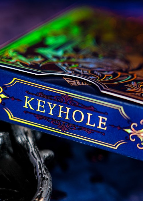 TCC Luxury presents Keyhole Playing Cards Luxury Edition. Keyhole Playing Cards is the creation of Moyogames, which TCC gained license to release them with upgraded craftmanship and premium paper. The deck switched from blue core paper to black core paper, and will have the signature M23 Finish for smoothest handling. The tuck box is applied with gold stamping along with embossing. All the original artworks stay true to the original, which are then to be elevated with holographic foil printing.