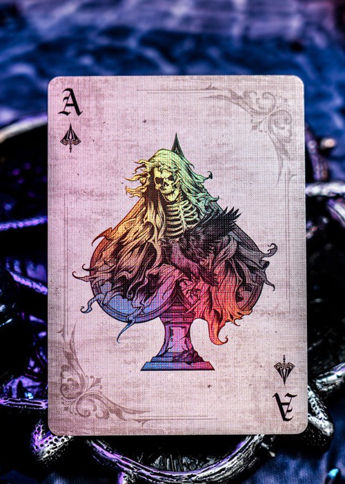 The Haunted Castle features the eerie scary haunted castle with its nightmarish environment. Designed with distressed aesthetics, each card in The Haunted Castle feels like an ancient artifact, filled with ghostly history and ominous secrets. The full allure of purple comes alive, as mysterious characters and enchanting stories await your discovery within the castle walls. As the light shifts, the demon transforms into a colorful jester, concealing its sinister appearance. The holo foil displays a rainbow sheen, as if opening a mysterious gateway to the eerie castle. Behind every court card lies a notorious character. The asymmetrical illustrations reveal their dual nature: one side disguised, the other side true. The exciting luxurious craftsmanship enhances every detail of the deck. From the gold foil inside the tuck case to the holographic foil on the cards, you’ll absolutely love it.