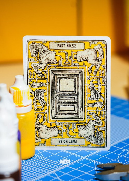 Inspired by assembly models (plastic model kits), these playing cards are disassembled and re-envisioned as connectable model components, paying tribute to the nostalgic joy of exploration found in vintage toys. Take a close look—the simple yet perfectly integrated marking system on the runners adds even more ways to play.