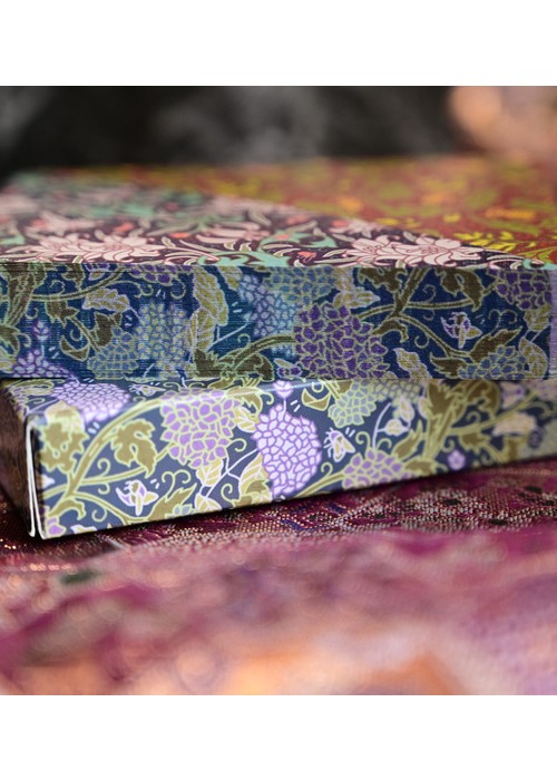 This is one of the Dyed Variant; Dyed Patternwork have dual-pattern back of lilies & ladybirds in blue/turquoise/white with thymes & tiger beetles in red/green, silver holographic cold foil faces with unique dyed edge printing that matches the tuck box artwork. – The sleeve is copper metallic foil with wine red embossed artwork and the pattern featured is hydrangeas & honey bees. The cards are edge printed with the pattern of the box, with a single honey bee on top side.